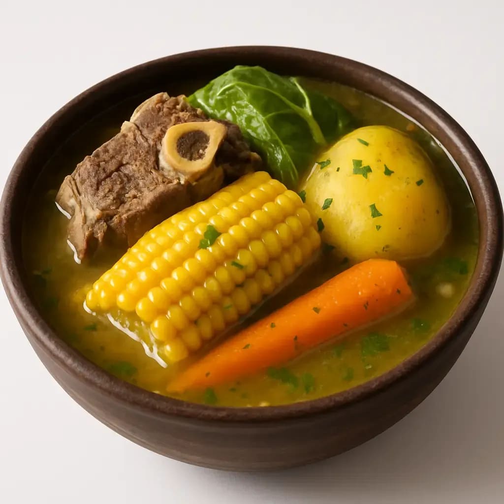 Si usas vacuno, cocina a hervor suave entre 1½ y 2 horas hasta que la carne esté tierna y se desprenda del hueso. Si usas pollo, cocina 30–40 minutos hasta que esté cocido. Durante la cocción, retira la espuma que suba a la superficie con una cuchara.