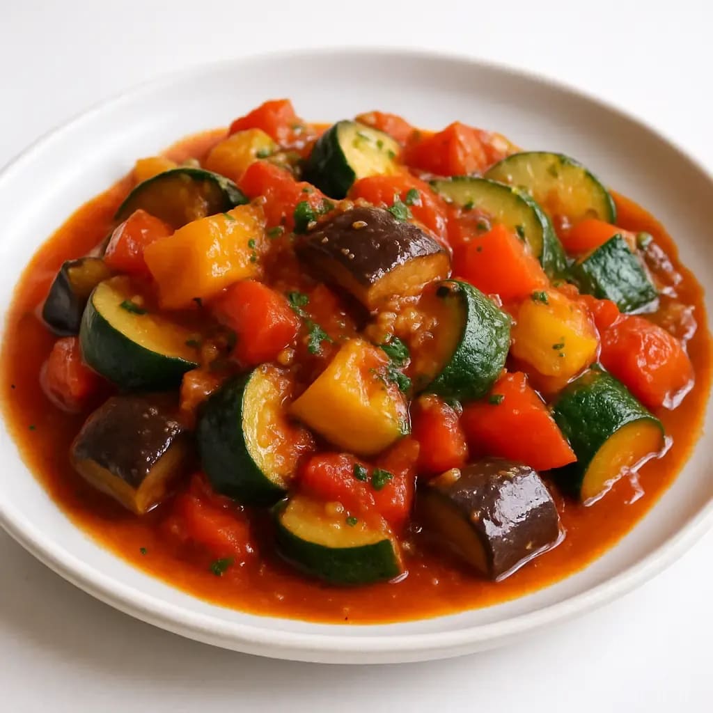 Reduce el fuego a bajo y cocina a fuego lento, con la cazuela parcialmente tapada, durante 25–35 minutos. Remueve de vez en cuando hasta que todas las verduras estén tiernas y los sabores se hayan concentrado. Si queda muy seco, añade una cucharada de agua o caldo.